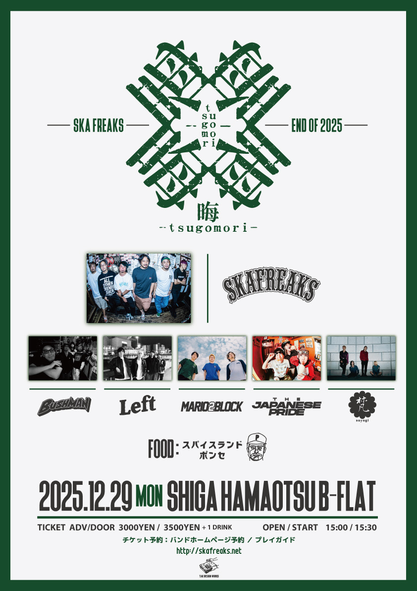 NEWS 2025.11.21 最終出演アーティスト解禁🔥🔥 2025.11.04 第一弾アーティスト解禁🔥 2025.10.22 🎉2026.1.24.sat大阪心斎橋BIG CATにてLeft presents 『WEST POINT』 20th Anniversary開催決定🎉 2025.06.14 9/7 大阪 堺東Goith XMAS EILEEN Drum presents [GOOD ROCK-count4-]2MAN LIVE 堺東Goith 21th Anniversary出演決定!! MORE NEWS NEW RELEASE 万物想 2024.7.17.Release / ¥2,000(tax in) / ALT-0023 MORE RELEASE LIVE SCHEDULE 2025.12.20(土) 三重 鈴鹿ANSWER ちゅんpre.「平田町酔狂曲」 2025.12.26(金) 大阪 心斎橋BRONZE 2025.12.29(月) 滋賀浜大津B-FLAT SKA FREAKS企画 「晦 -tsugomori-」 2025.12.31(水) 大阪 心斎橋BRONZE PAIL OUT pre. 「COUNTDOWN SAKAI 2025-2026」 MORE SCHEDULE MOVIE MORE MOVIE