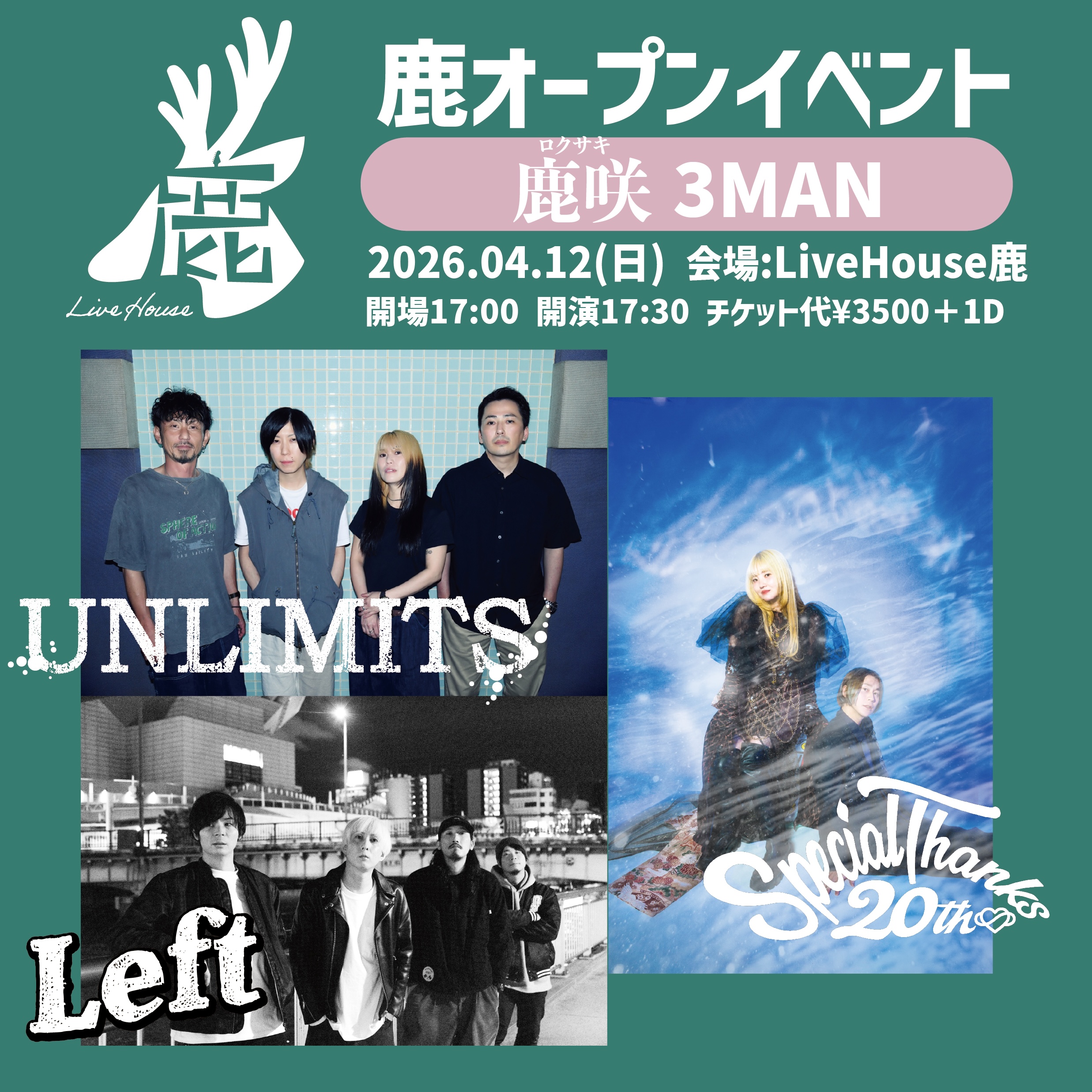 鹿オープンイベント「鹿咲(ろくさき)3MAN」