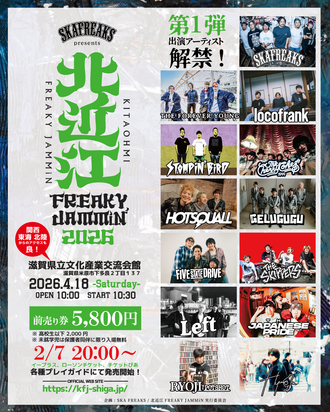 SKA FREAKS presents 【 北近江 FREAKY JAMMiN' 2026 】出演決定🎉